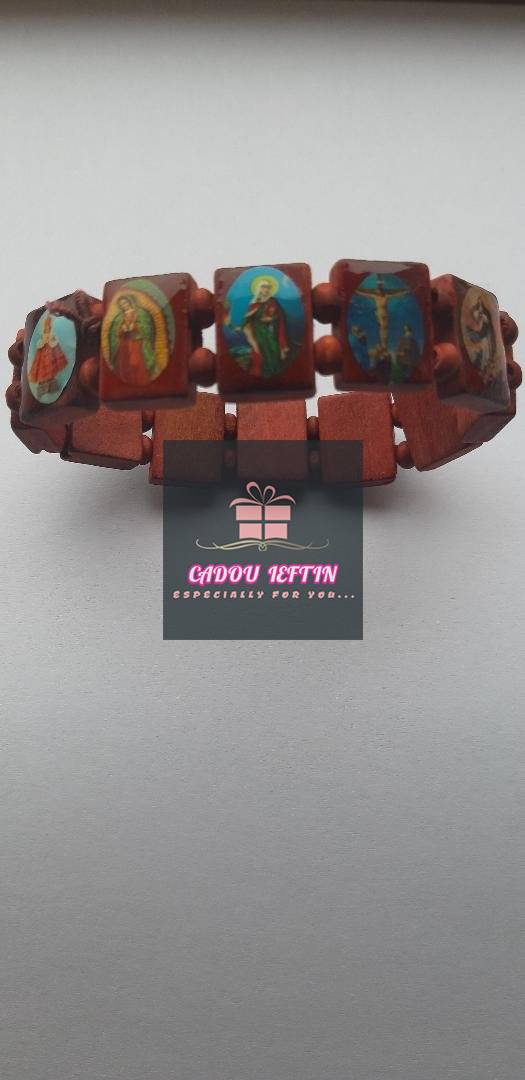 Bratara din lemn de culoare roscat, cu 12 icoane bisericesti, partea exterioara este lacuita (lucioasa).