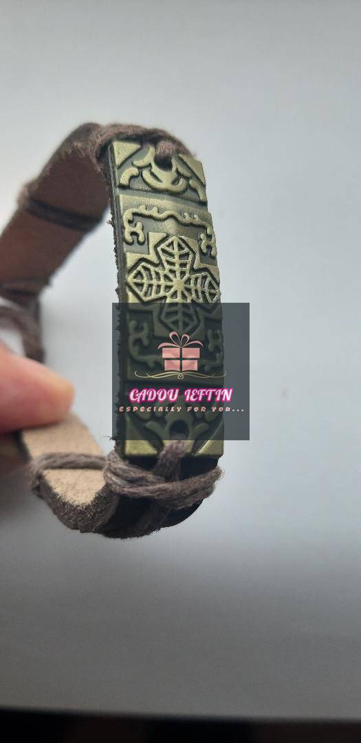 Bratara din piele naturala de culoare maro cu aplicatie "motiv cruce", dimensiune reglabila pentru orice fel de circumferinta a mainii, latime 1,3 cm, grosime 0,30 cm.