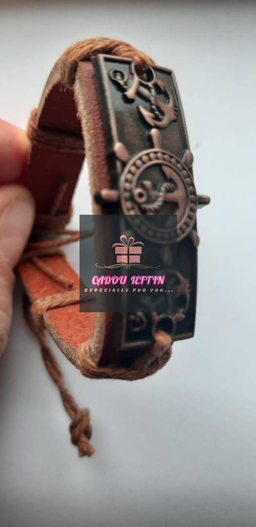 Bratara din piele naturala de culoare maro cu "timona+ancora", dimensiune reglabila pentru orice fel de circumferinta a mainii, latime 1,3 cm, grosime 0,30 cm. |
